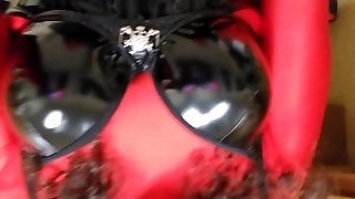 JessicaXD Exposing Rubber Titts in Black Lingerie