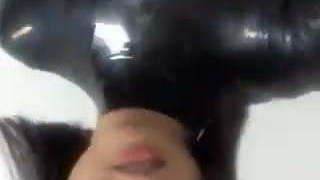 Black latexdoll masturbation